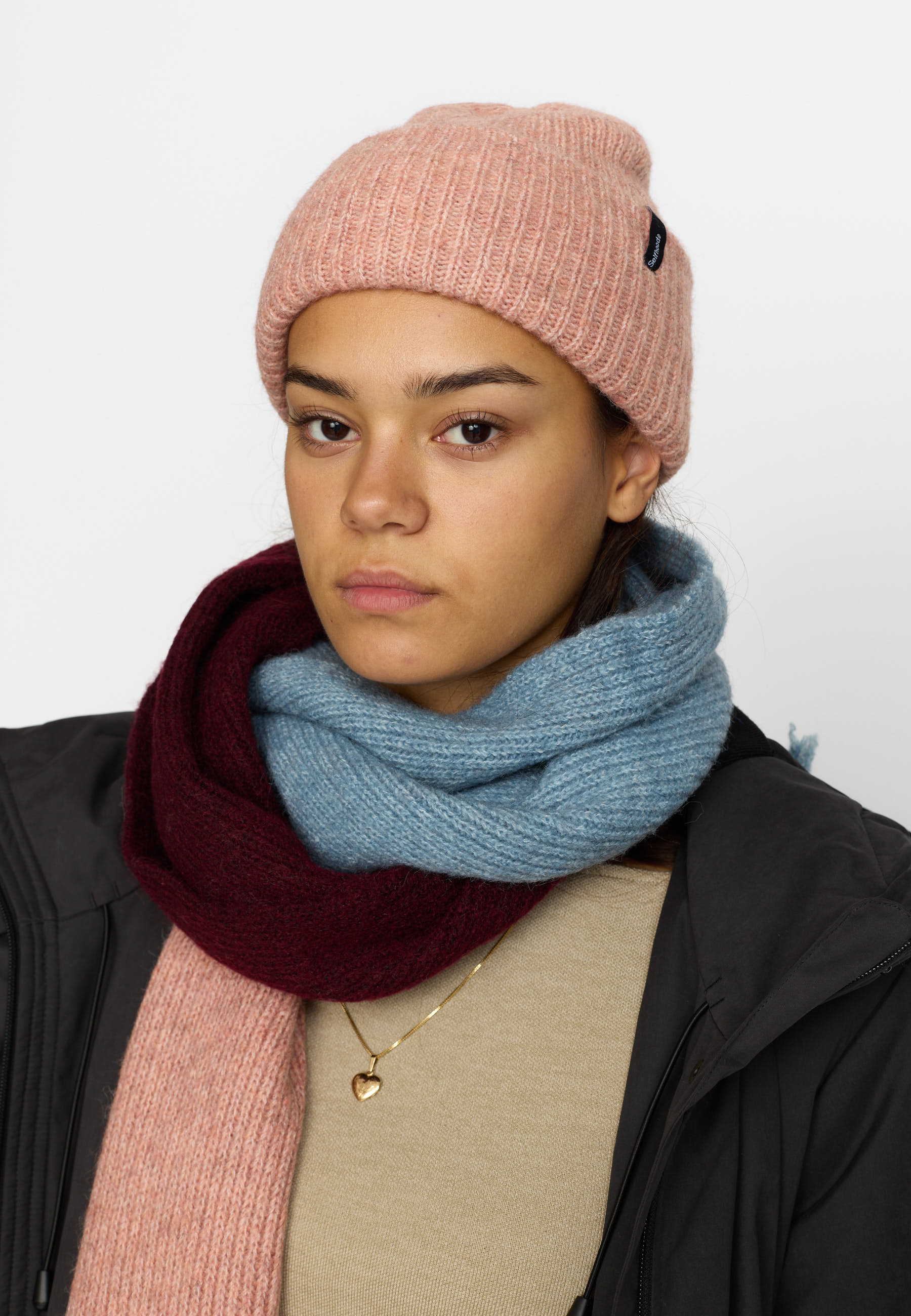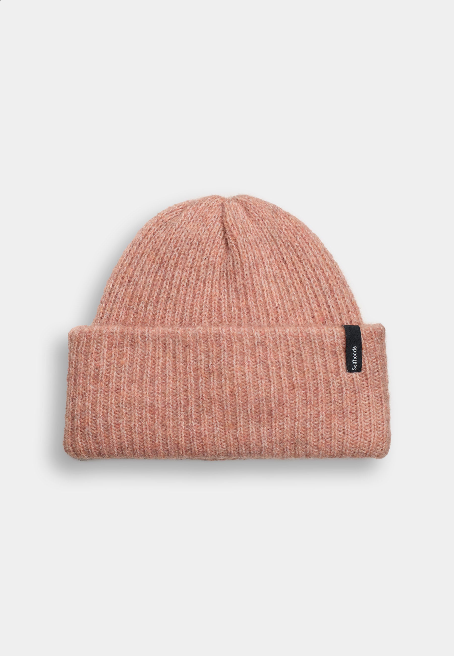Warm knitted beanie with a big fold-up brim, made of a soft, fluffy recycled polyester-wool-mix yarn. The beanie features a discrete Selfhood brand-label, and you will find the beanie in many beautiful colors that will match your outfit