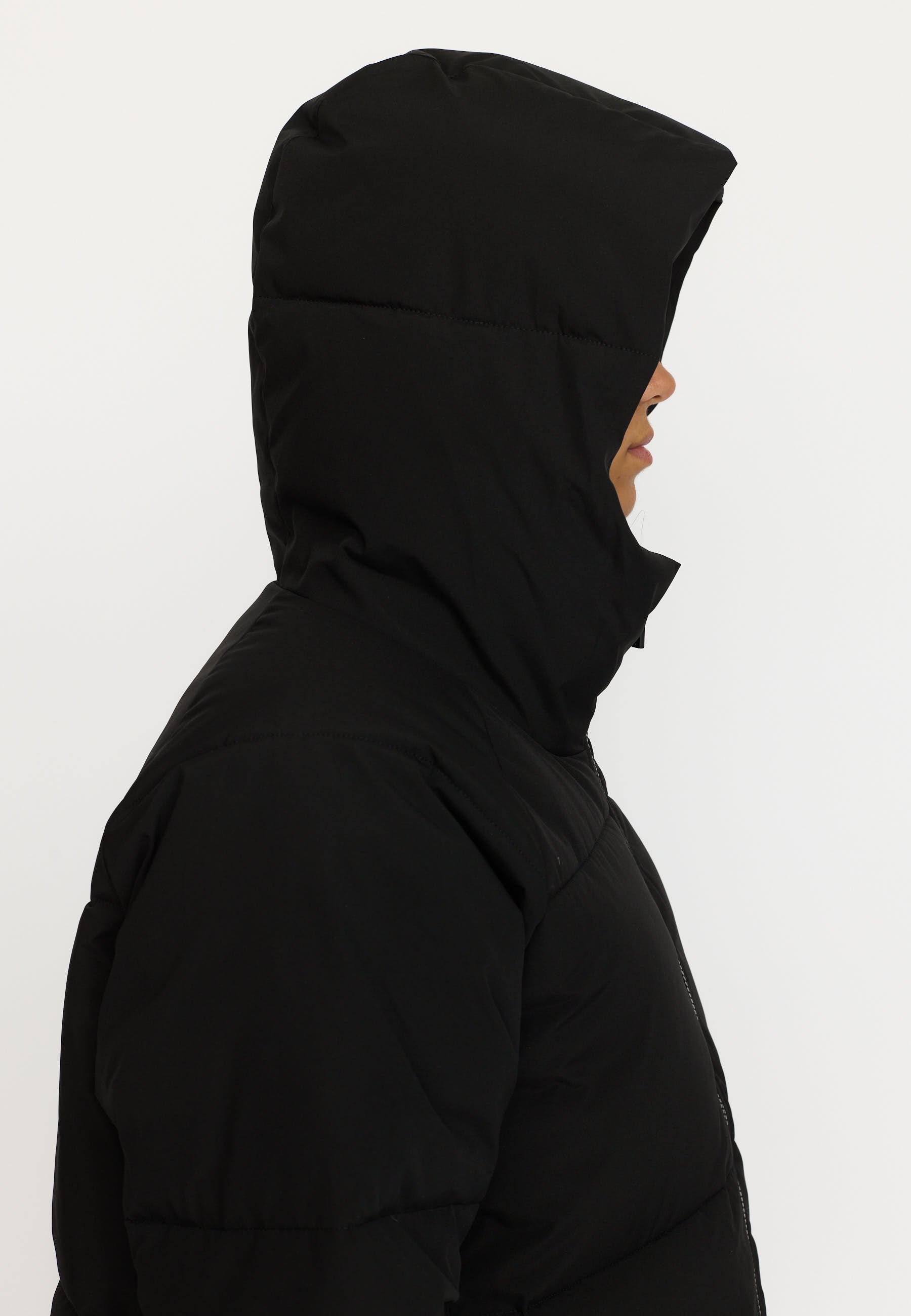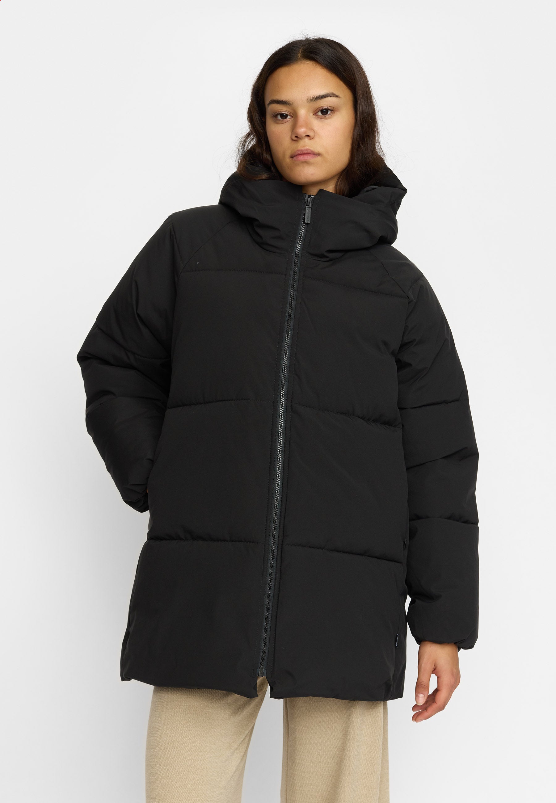Mid-cut hooded puffer jacket in an oversized design, made of a thin stretchable recycled polyester fabric. The puffer jacket is made with raglan sleeves, a bold tone in tone Vislon zipper and an adjustable bottom hemline. The side-pockets with hidden zippers are lined with warm fleece lining for extra comfort. The water-repellent Teflon EcoElite coating is environmentally friendly, free of harmful fluorocarbon. The warm and highly compressible insulation is a DuPont Sorona Padding, a fiber partially made with renewable plant-based ingredients and produced with particular attention towards the environment