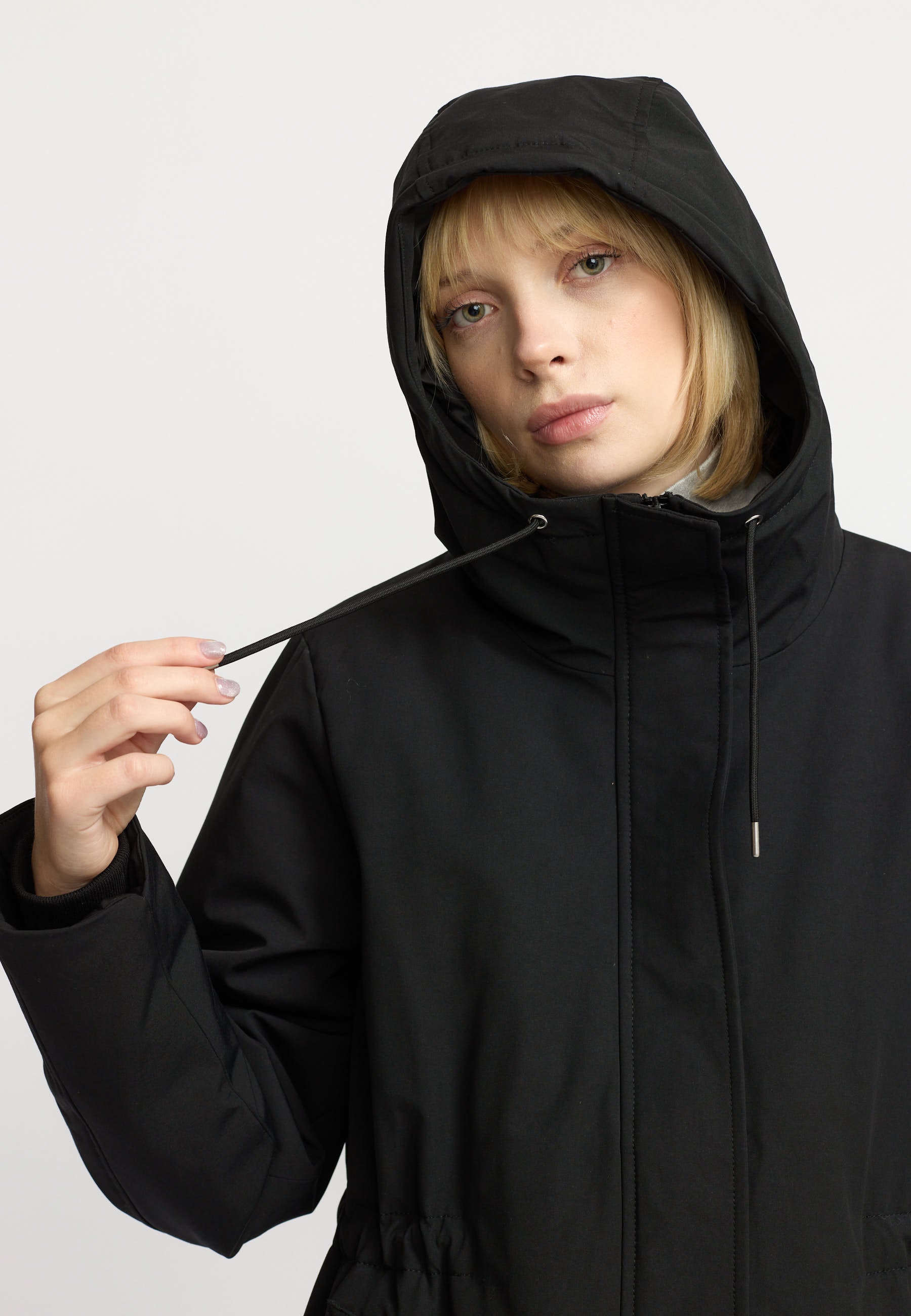 Classic mid-length hooded winter parka coat, made of a nylon-cotton mix-fabric. The comfortable pockets are lined with a warm fleece lining and all trimmings are tone in tone for a stylish look. The coat can be tugged in around the waist, to give the coat shape and ensure a nice fit. The water-repellent Teflon EcoElite coating is environmentally friendly, free of harmful fluorocarbon. The parka is padded with 100 gms Recycled Thinsulate™ insulation, made of 78% recycled fibres. It traps more air in less space and keeps you surprisingly warm