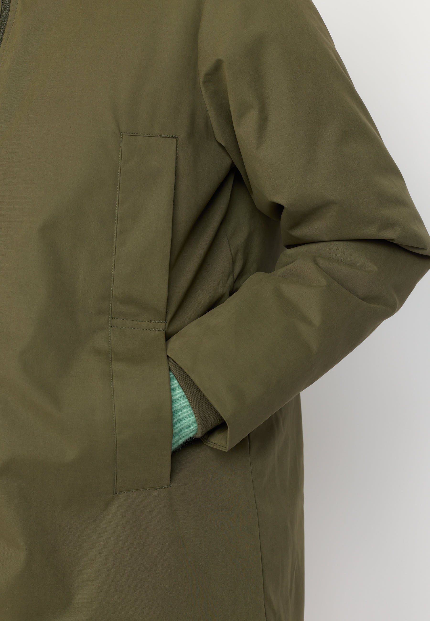Knee-long hooded jacket made of a recycled polyester fabric with a soft, peached surface and with tone in tone trimmings. The coat is made with a hidden rib cuff at the sleeve-end and an adjustable hood to keep out the wind and cold weather. The characteristic double welt-pockets are made with warm fleece lining and the waist can be tugged in on the back, to give the coat shape and ensure a nice fit. The water-repellent Teflon EcoElite coating is environmentally friendly, free of harmful fluorocarbon. The coat is padded with 120 gms Recycled Thinsulate™ insulation, made of 78% recycled fibres. It traps more air in less space and keeps you surprisingly warm