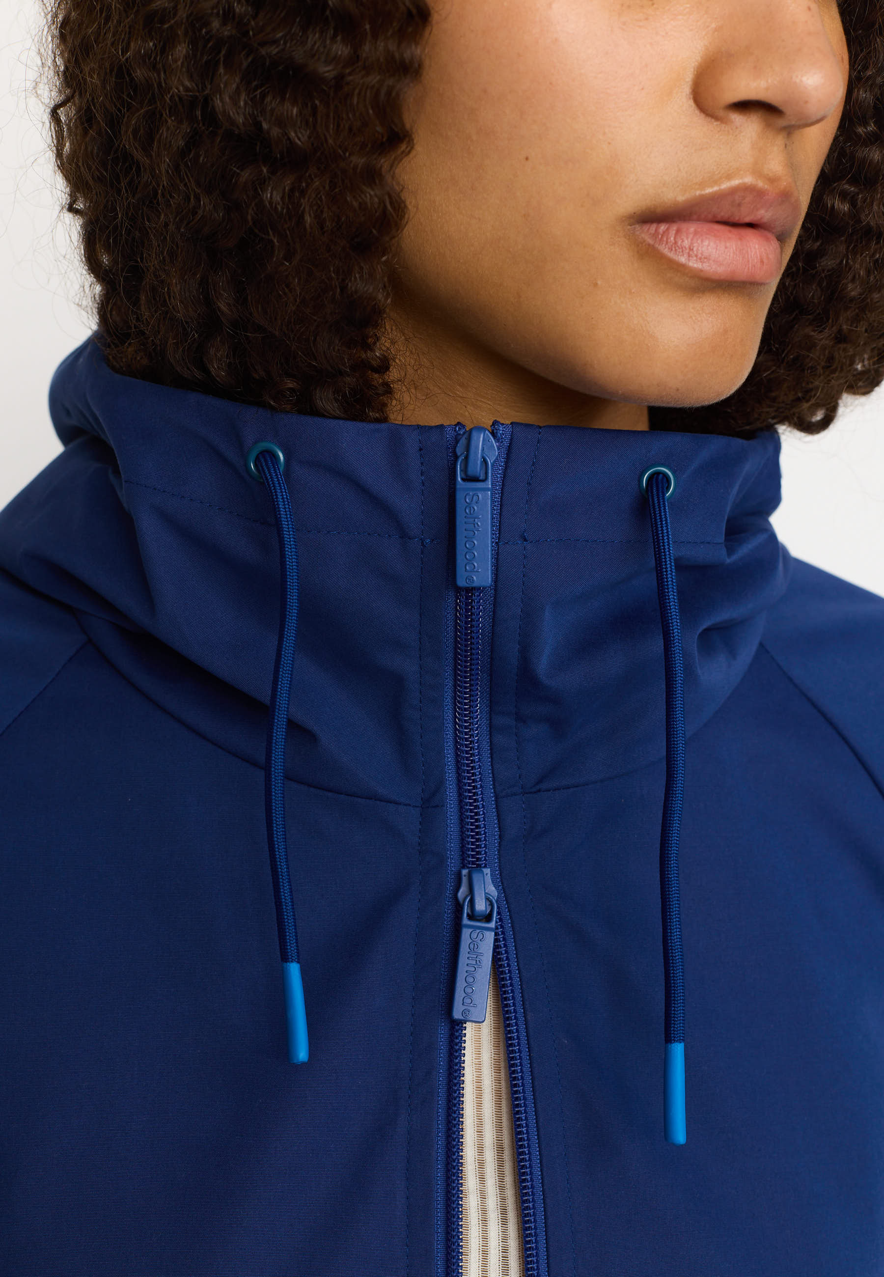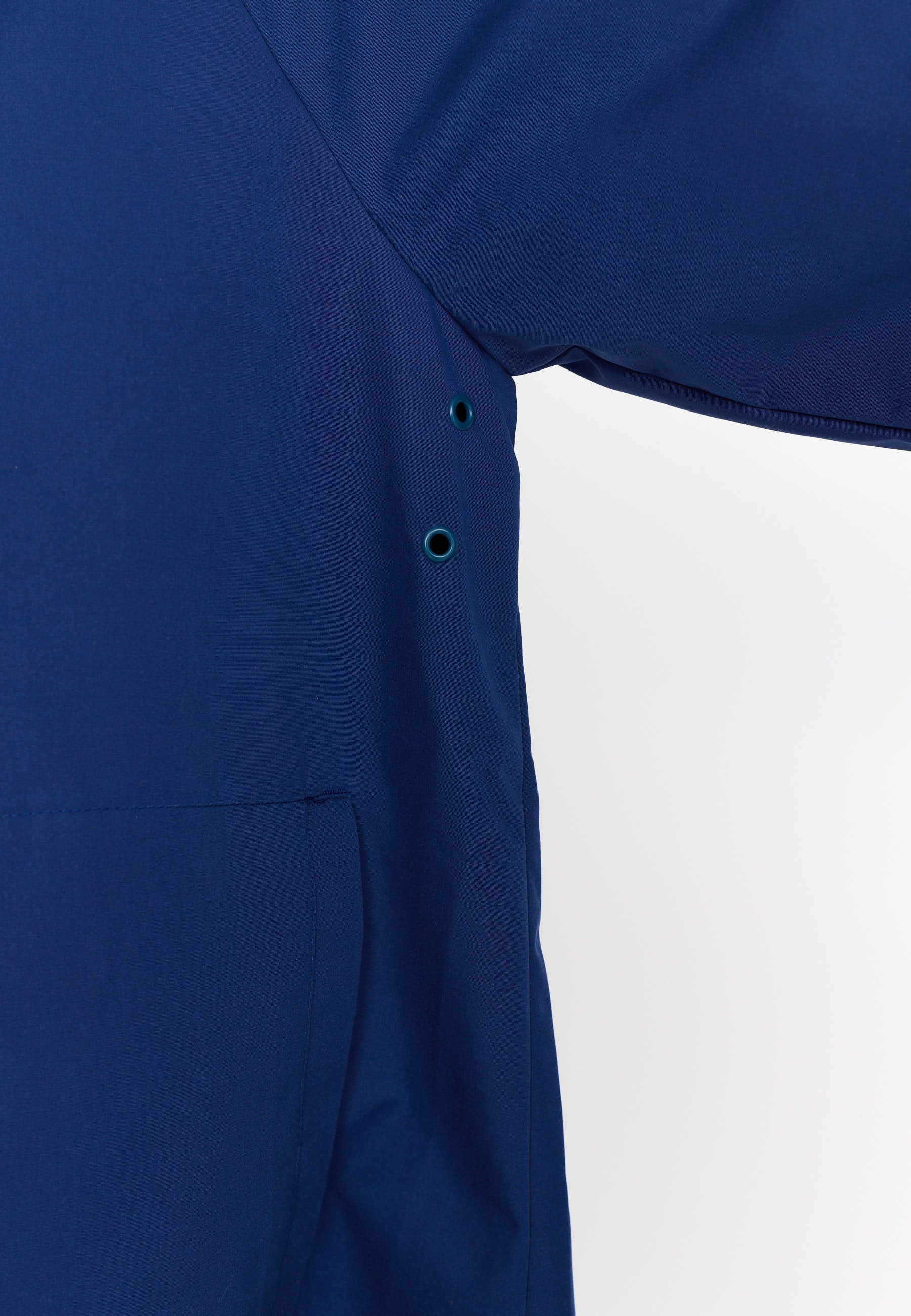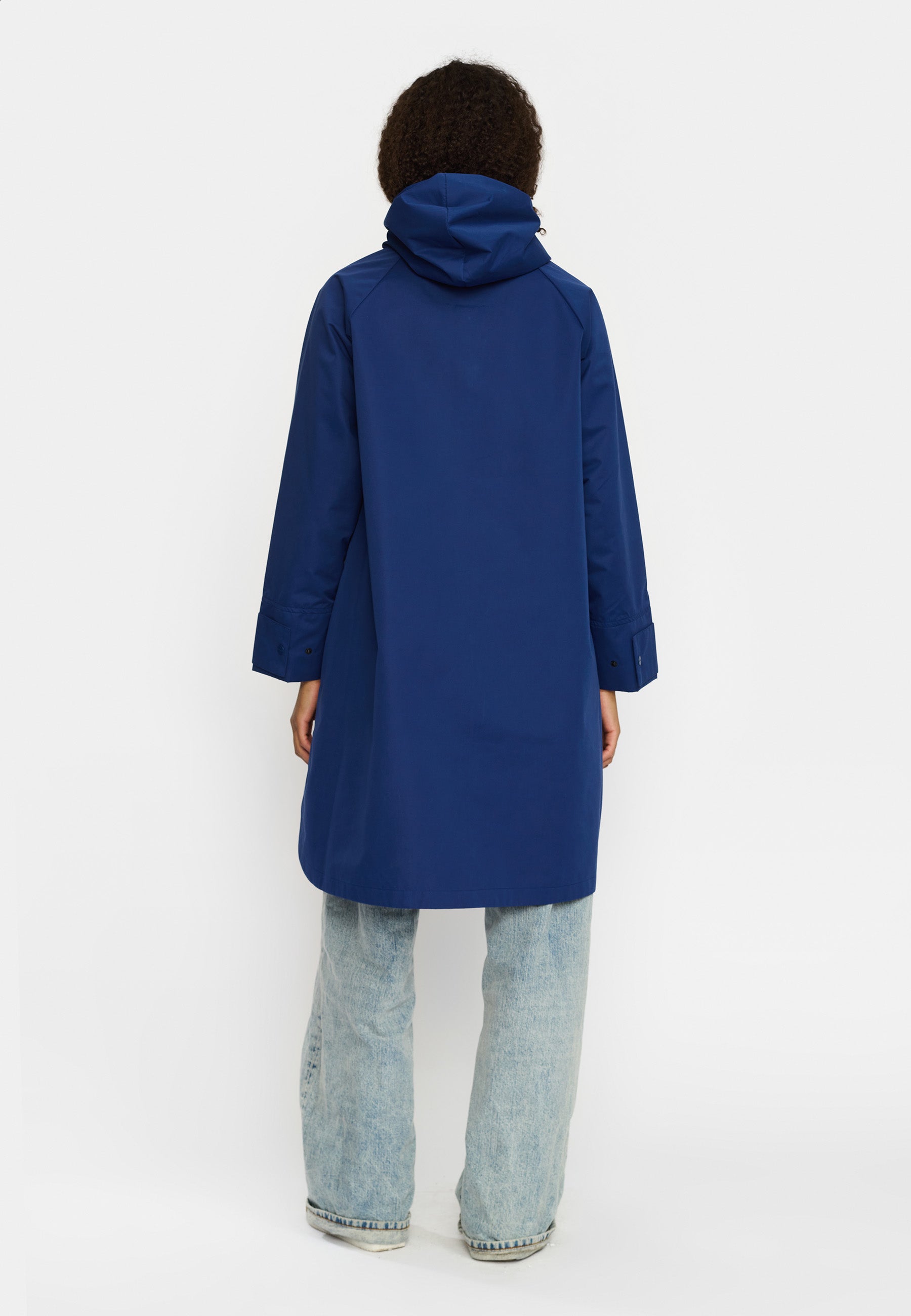 Knee-long hooded jacket made of a recycled polyester fabric with a soft, peached surface in a classic design. The coat has a feminine rounded bottom-line, half-moon shaped pockets, and an adjustable cuff and hood to keep out the wind and rain, and the tone in tone zipper and logo snap-buttons finishes the jacket nicely. The technical lightweight fabric with a 14.000 WCP membrane on the backside, is designed for versatile use, and makes this jacket a safe choice for the changing spring weather. To guarantee that this garment is free from any harmful fluorocarbon, it is coated with environmentally friendly and water-repellent Teflon EcoElite coating
