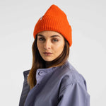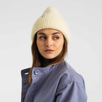 Beanie with a fold-up and a Selfhood brandlabel. Made in a soft fluffy mix-yarn.